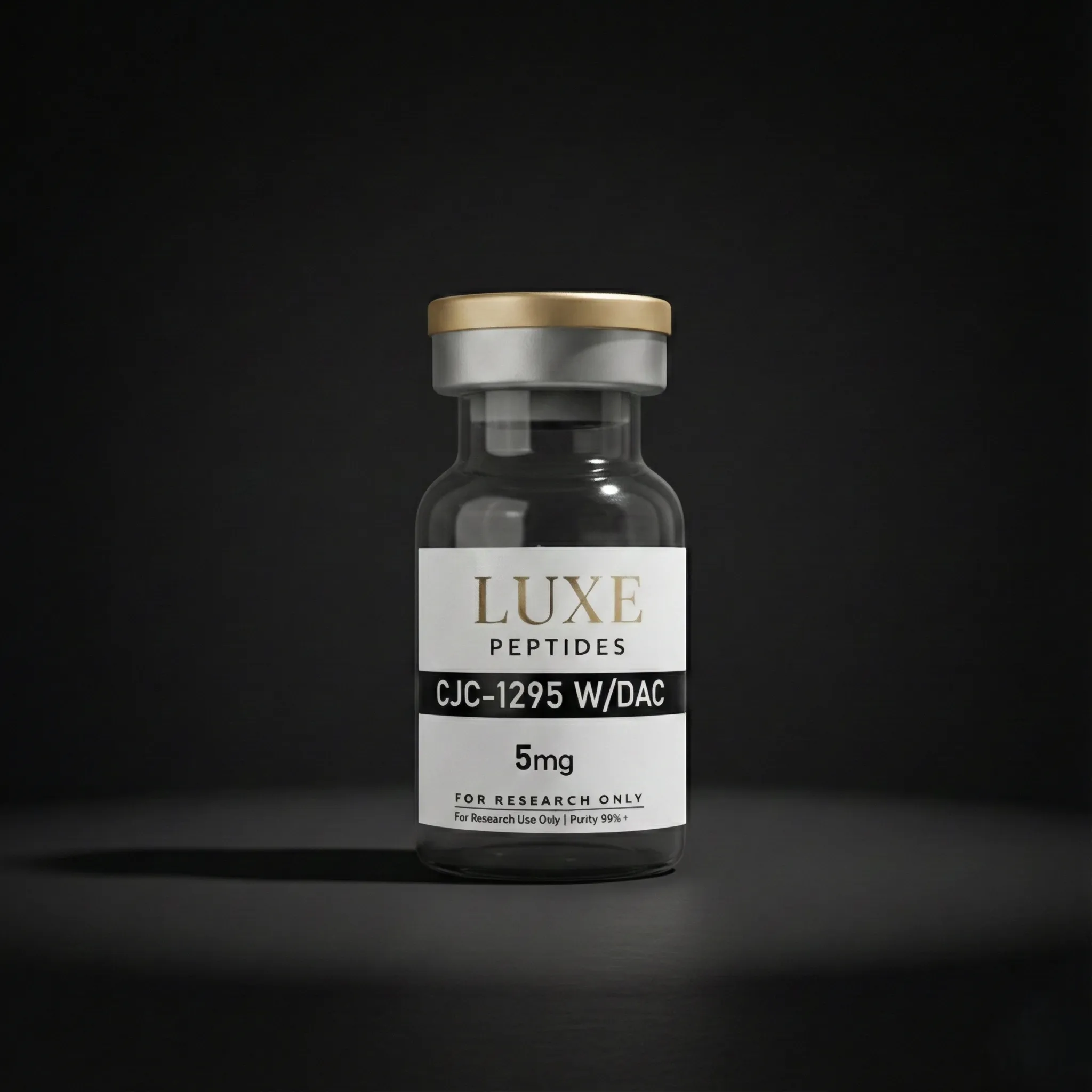 CJC-1295 with DAC is a GHRH analog conjugated with a Drug Affinity Complex that binds albumin, extending its half-life to 6-8 days for sustained GH elevation.