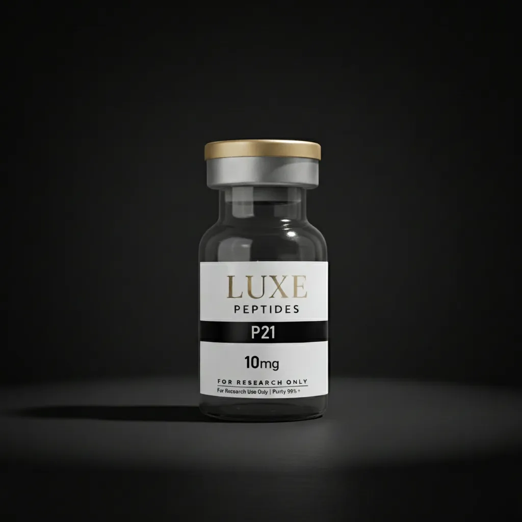 P21 has been investigated for its neurotrophic activity through BDNF pathway modulation. Researchers observed that P21 treatment in neuronal models was associated with increased BDNF expression and TrkB receptor phosphorylation, activating downstream cascades including MAPK/ERK and PI3K/Akt pathways involved in neuronal survival and synaptic plasticity. Unlike CNTF, P21 does not require the CNTFRα receptor for signaling, suggesting a distinct or simplified mechanism of action. Studies in aged mouse models showed that P21 administration was associated with increased doublecortin-positive (DCX+) cells in the hippocampal dentate gyrus, a marker of adult neurogenesis. Researchers also observed changes in synaptic markers including synaptophysin and PSD-95 expression. The peptide has been investigated for its effects on dendritic complexity and spine density in hippocampal neurons, parameters associated with learning and memory in preclinical models.